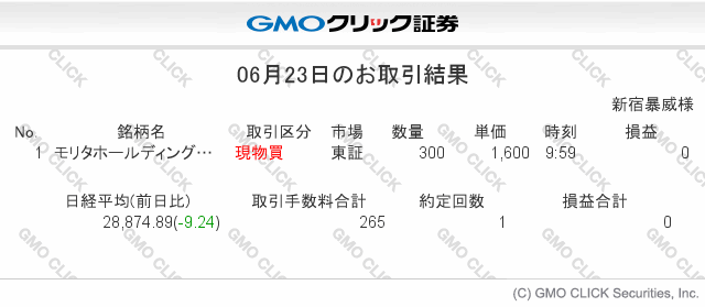 追記:クリック証券のトレードアイランドに参加していると、こんな感じでその日の約定履歴が表示できます↓