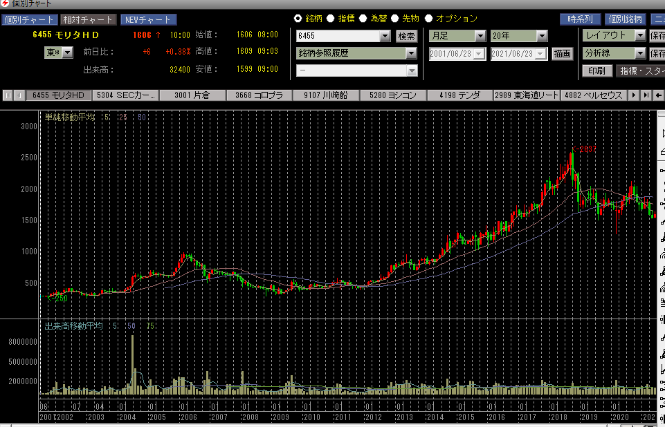 今回買ったのはモリタHD。消防車で国内シェアNo.1。海外売上も少し。時価総額720億で面白味のない株主構成。何か手堅い感じ?