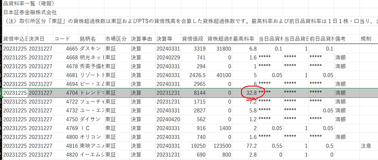 なお、貸株超過が激しい場合は、日証金判断で8倍(129.6円)、10倍(162円)になる可能性もありました。